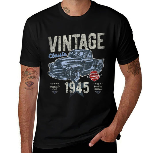 Vintage, Born 1945, 80th Birthday, Classic Pick Up Truck Rolled Sleeves T-Shirt