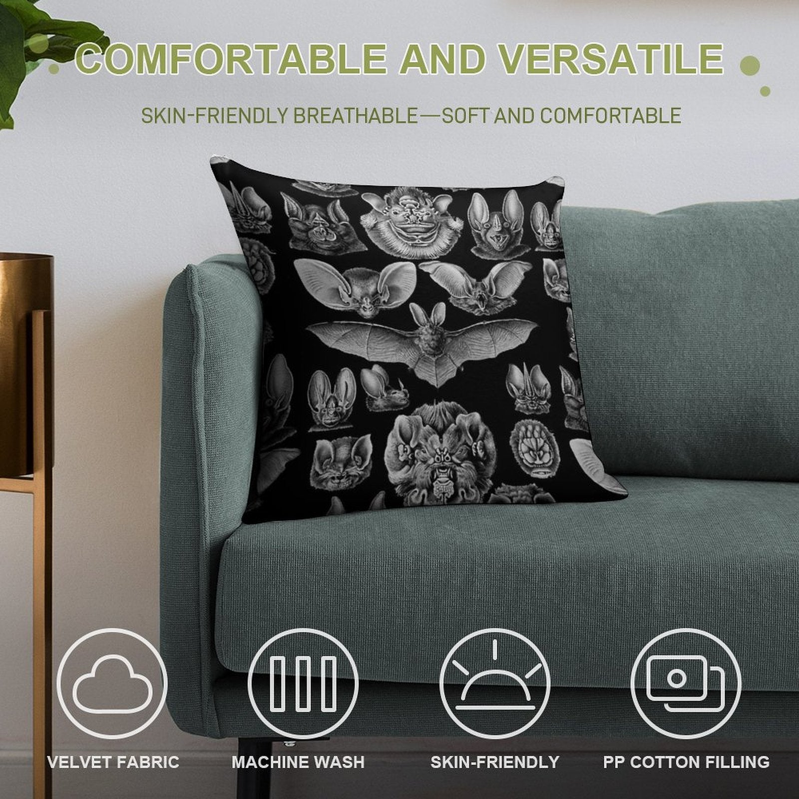 1904 Haeckel Chiroptera Soft Shrink-Resistant Throw Pillow