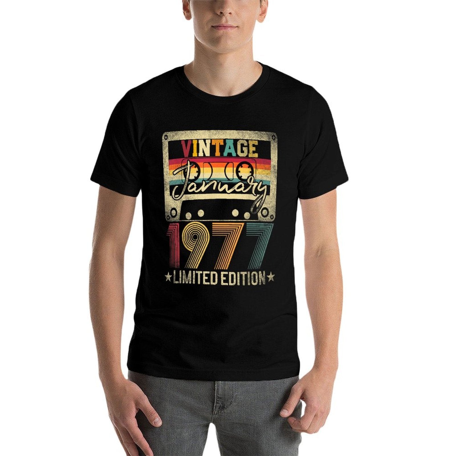 - Care Reminder: Skip soaking and bleach to extend your 1977 January Vintage Limited Edition 48th Birthday Gift tee’s lifespan.