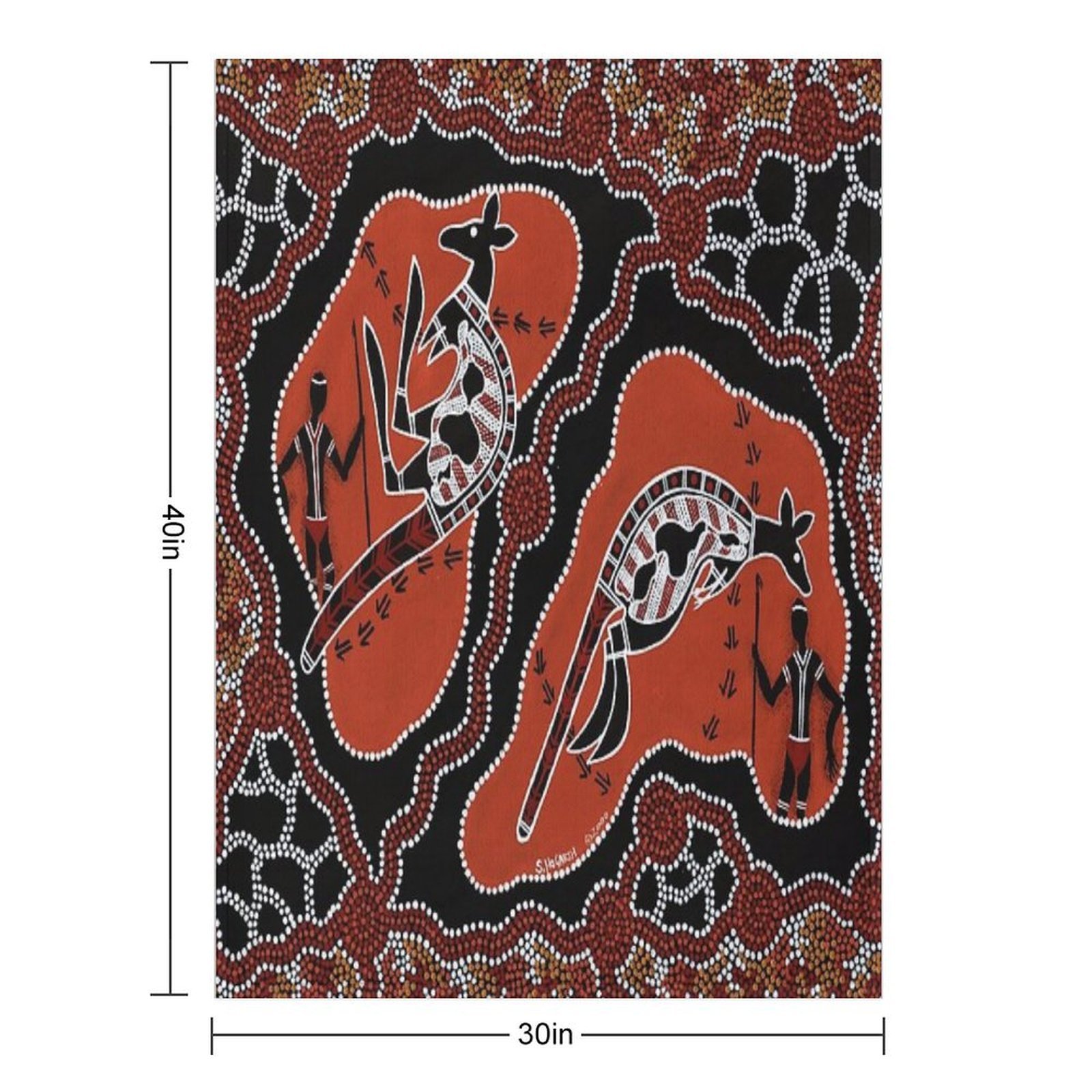 Authentic Aboriginal Art - Men Kangaroo Hunting Blanket Size Chart: