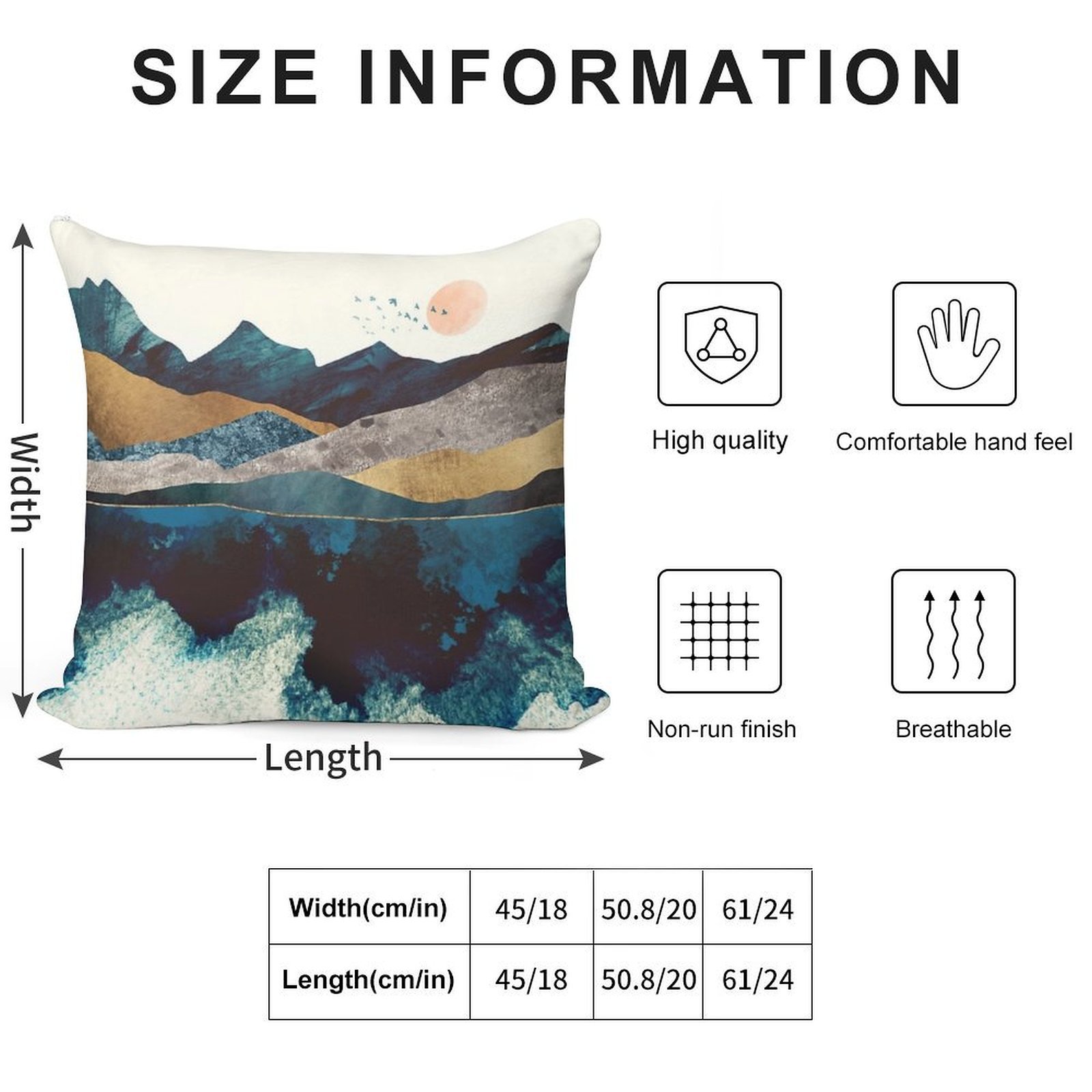 • Reinforced stitching along the edges prevents fraying and extends the life of your Blue Mountain Reflection Pillowcase.