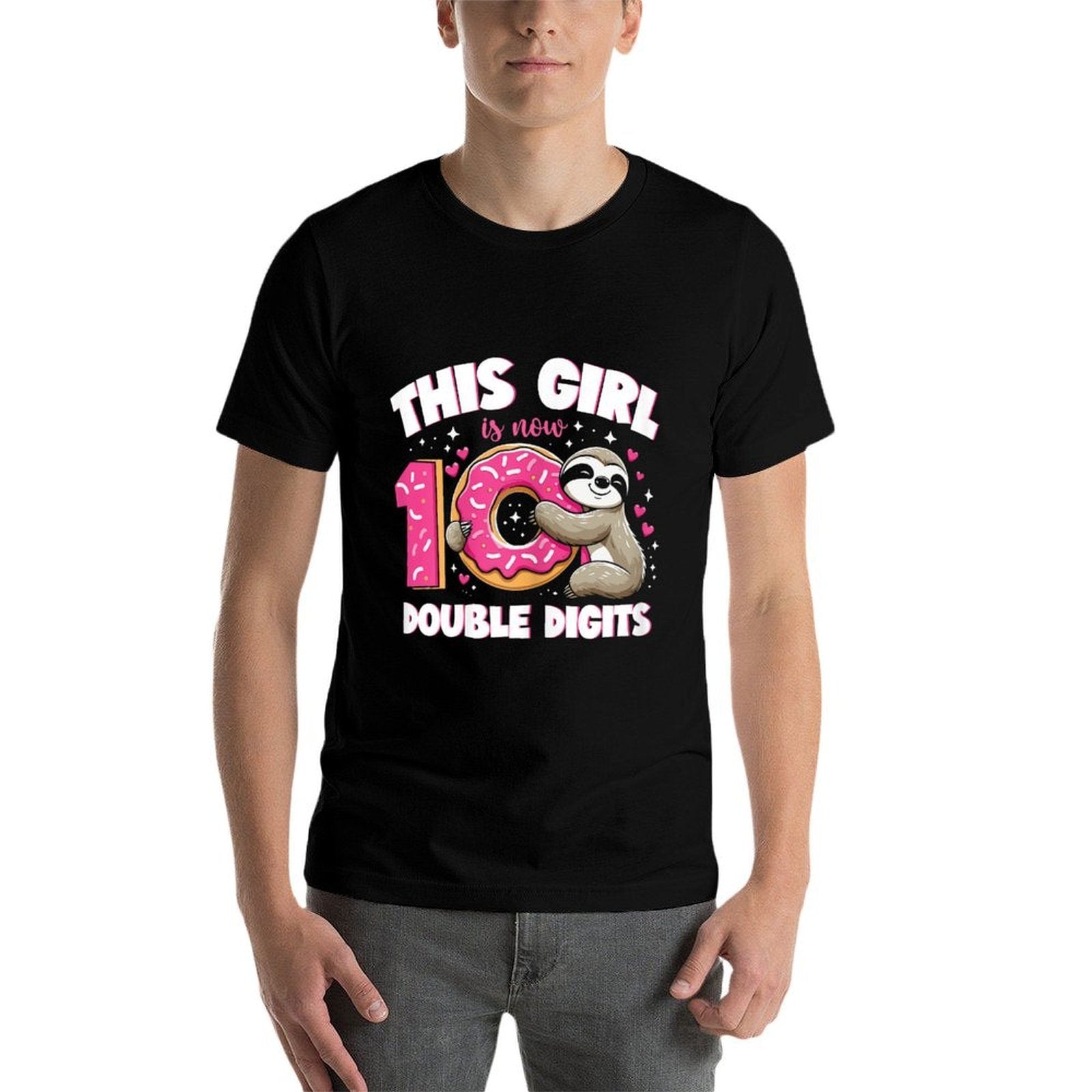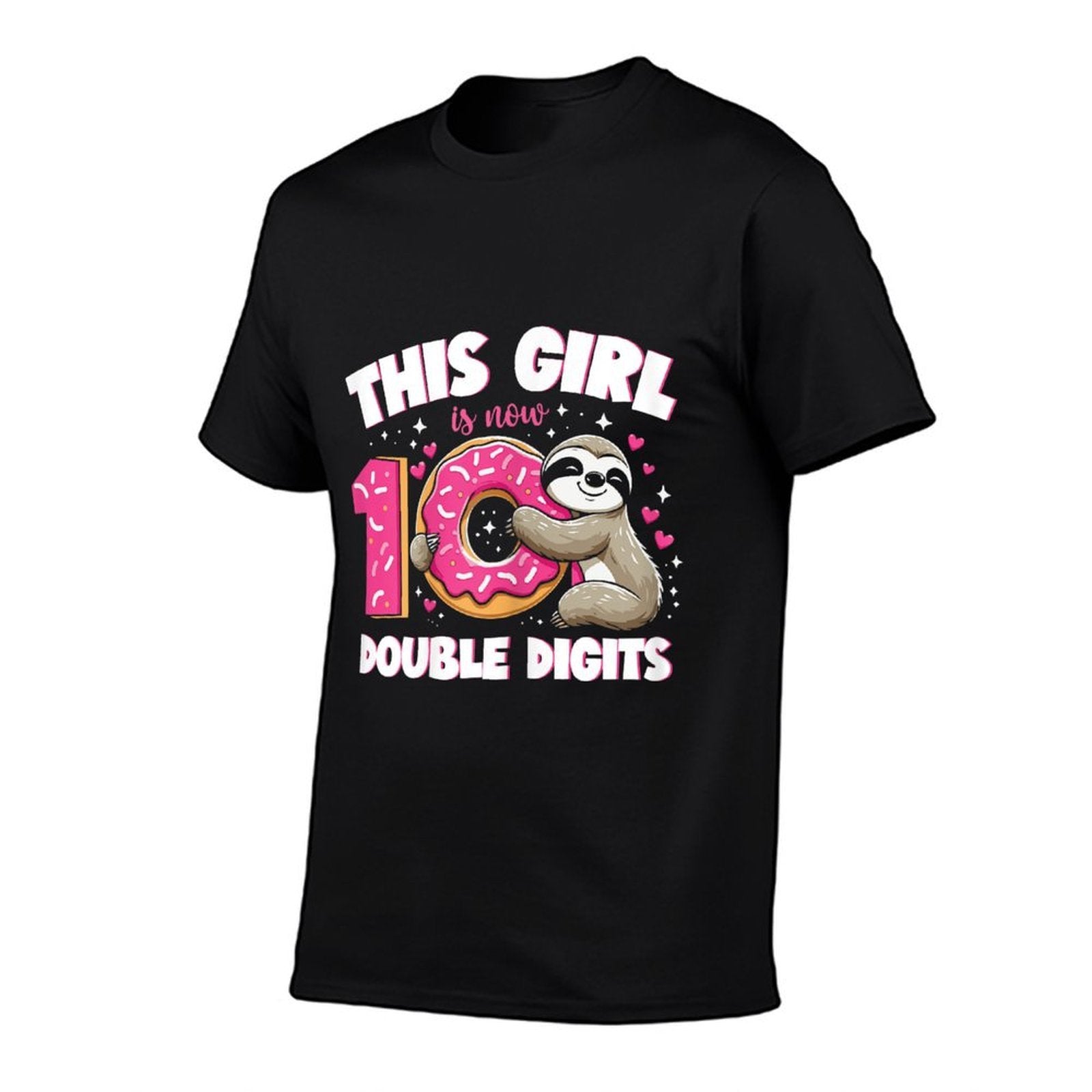 This Girl Is Now 10 Double Digits 10th Birthday Sloth High-quality Stitching T-Shirt