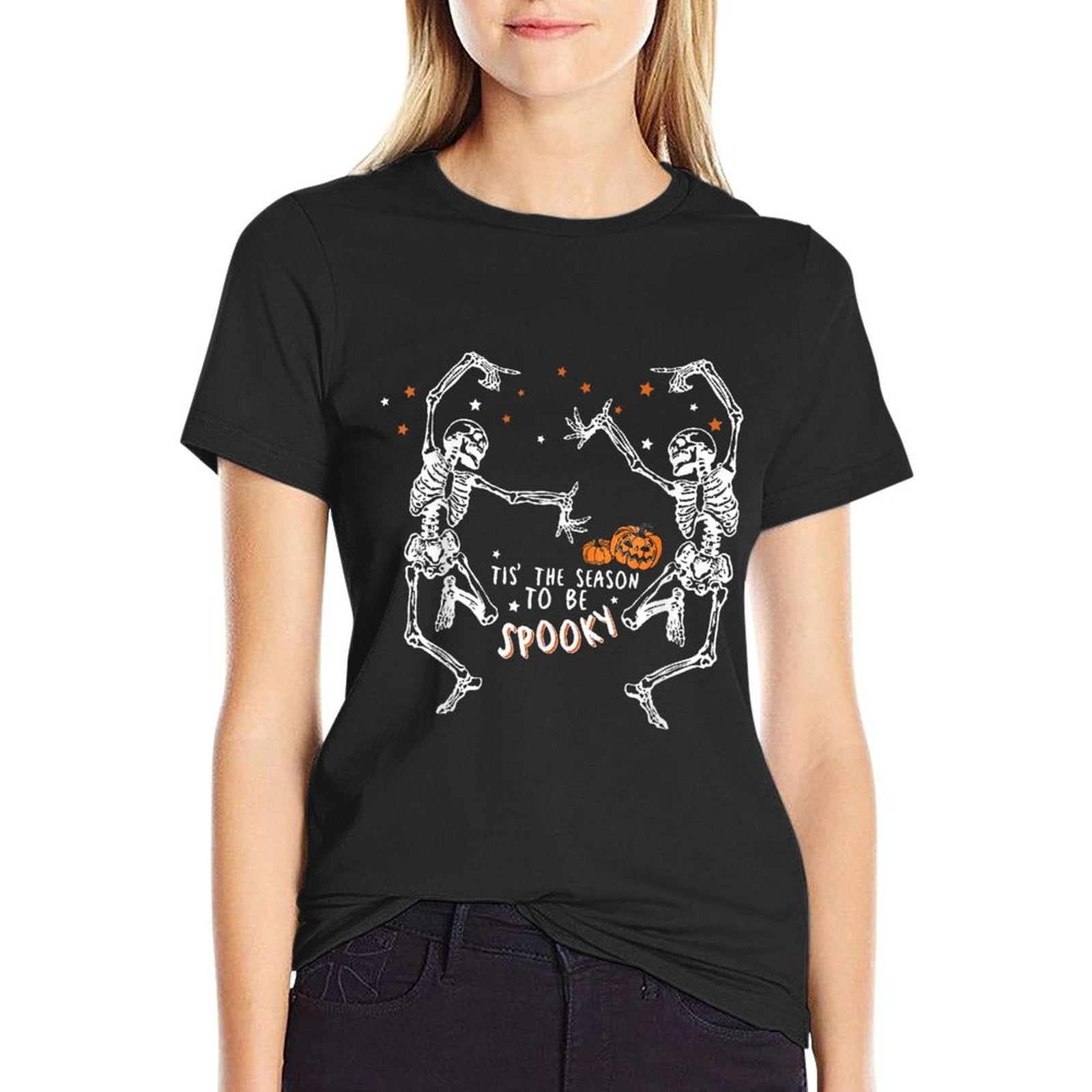 Tis The Season To Be Spooky Fall Halloween Dancing Skeleton Tagless Design T-Shirt