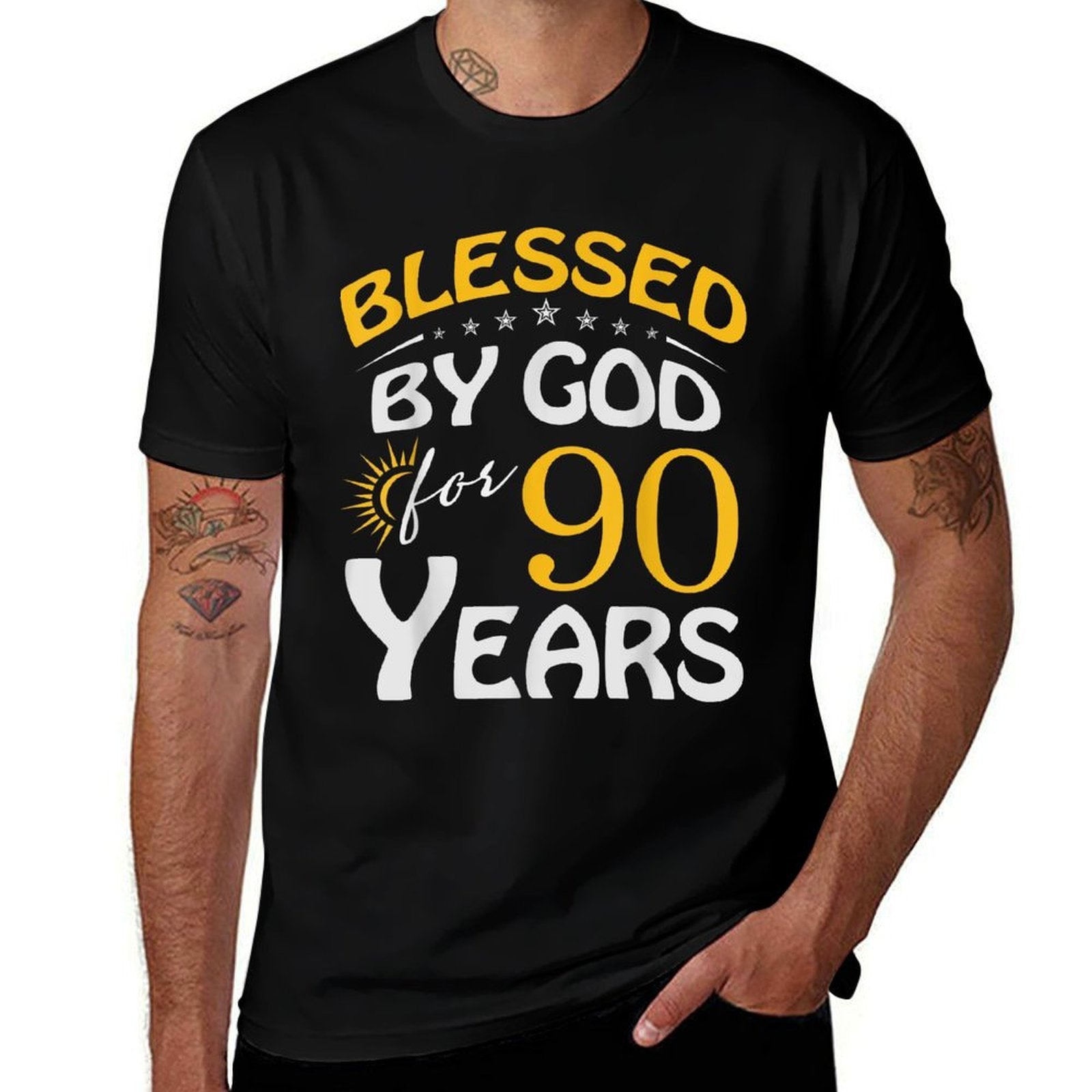 - Care Reminder: Skip soaking and bleach to extend your Vintage Blessed by God For 90 Years Old Happy 90th Birthday tee’s lifespan.