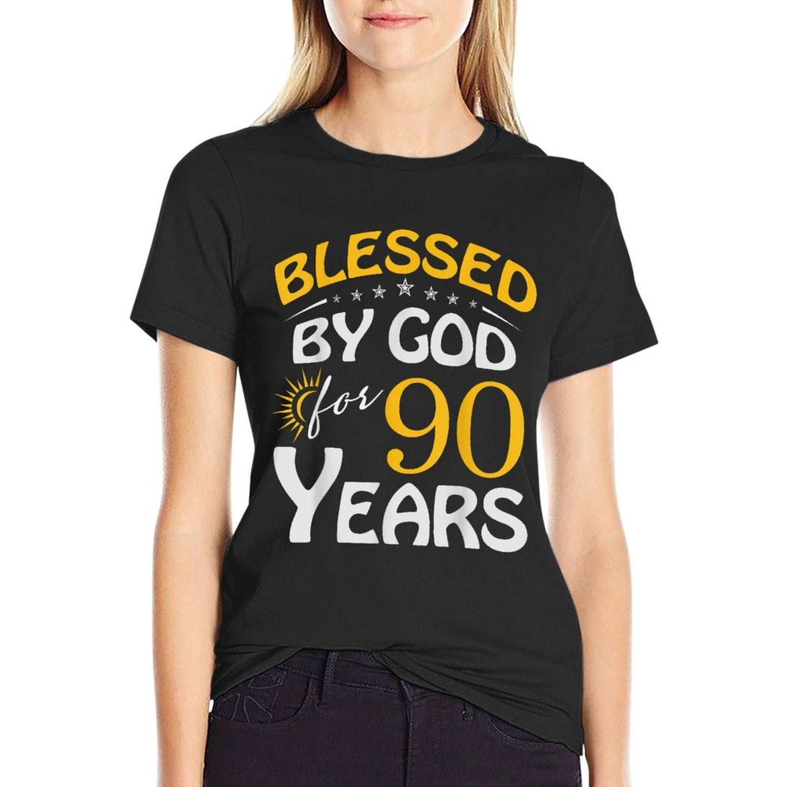 - Naturally breathable for Vintage Blessed by God For 90 Years Old Happy 90th Birthday summer adventures, from humid hikes to backyard BBQs.