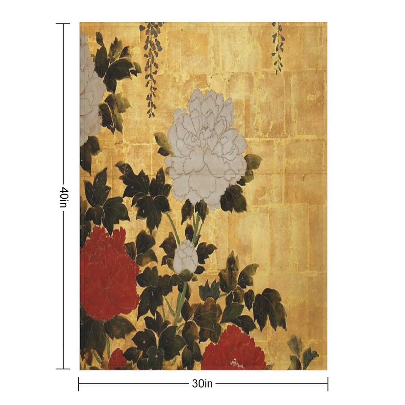 - Gift-Ready Appeal: Wrap your loved ones in joy with a Vintage Japanese Floral Gold Leaf Screen With Wisteria And Peonies blanket that’s as practical as it is heartfelt.