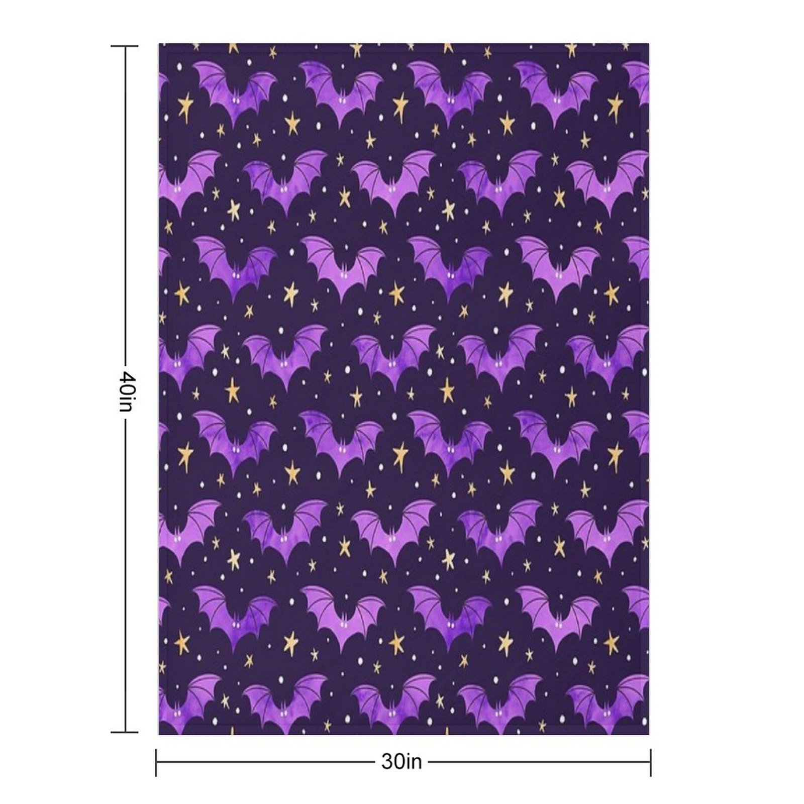 Watercolor Bats Purple on Black Blanket Size Chart: