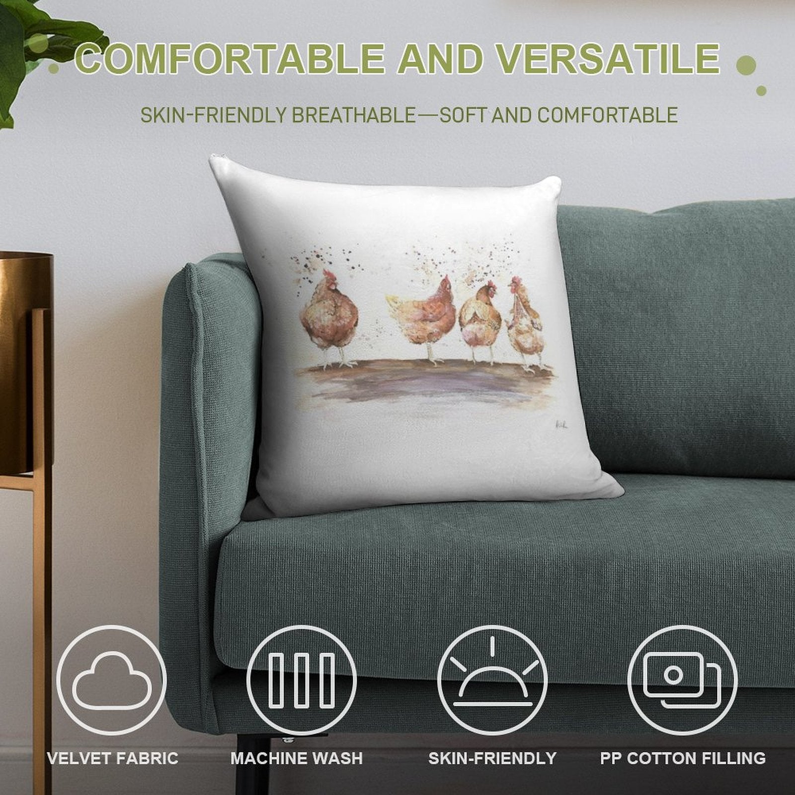 Watercolour Chickens Soft Warmth Comfort Throw Pillow