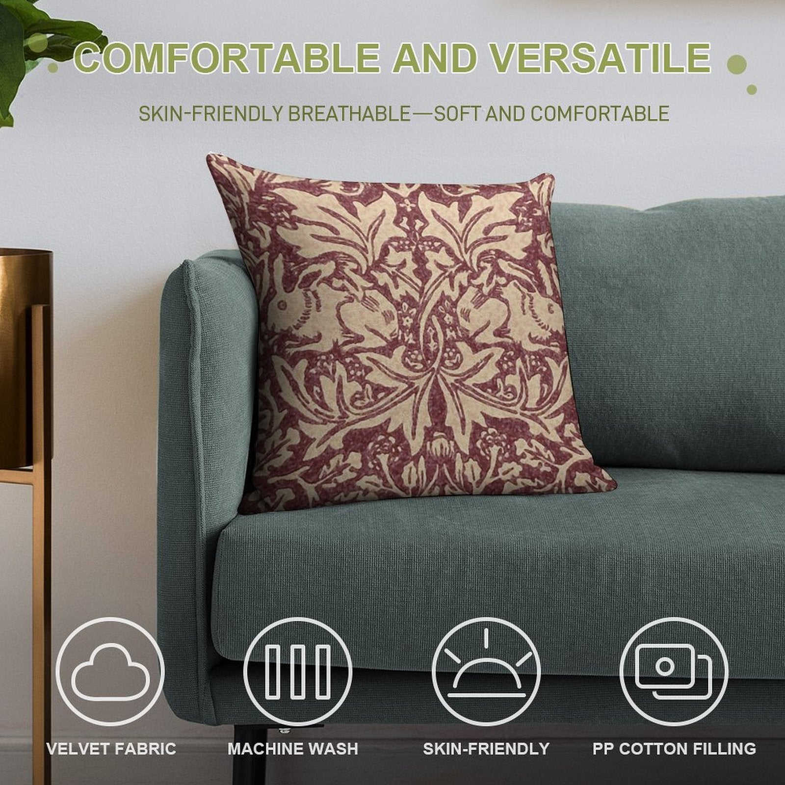 William Morris Brer Rabbit (burgundy) Pattern Soft Warmth Comfort Throw Pillow