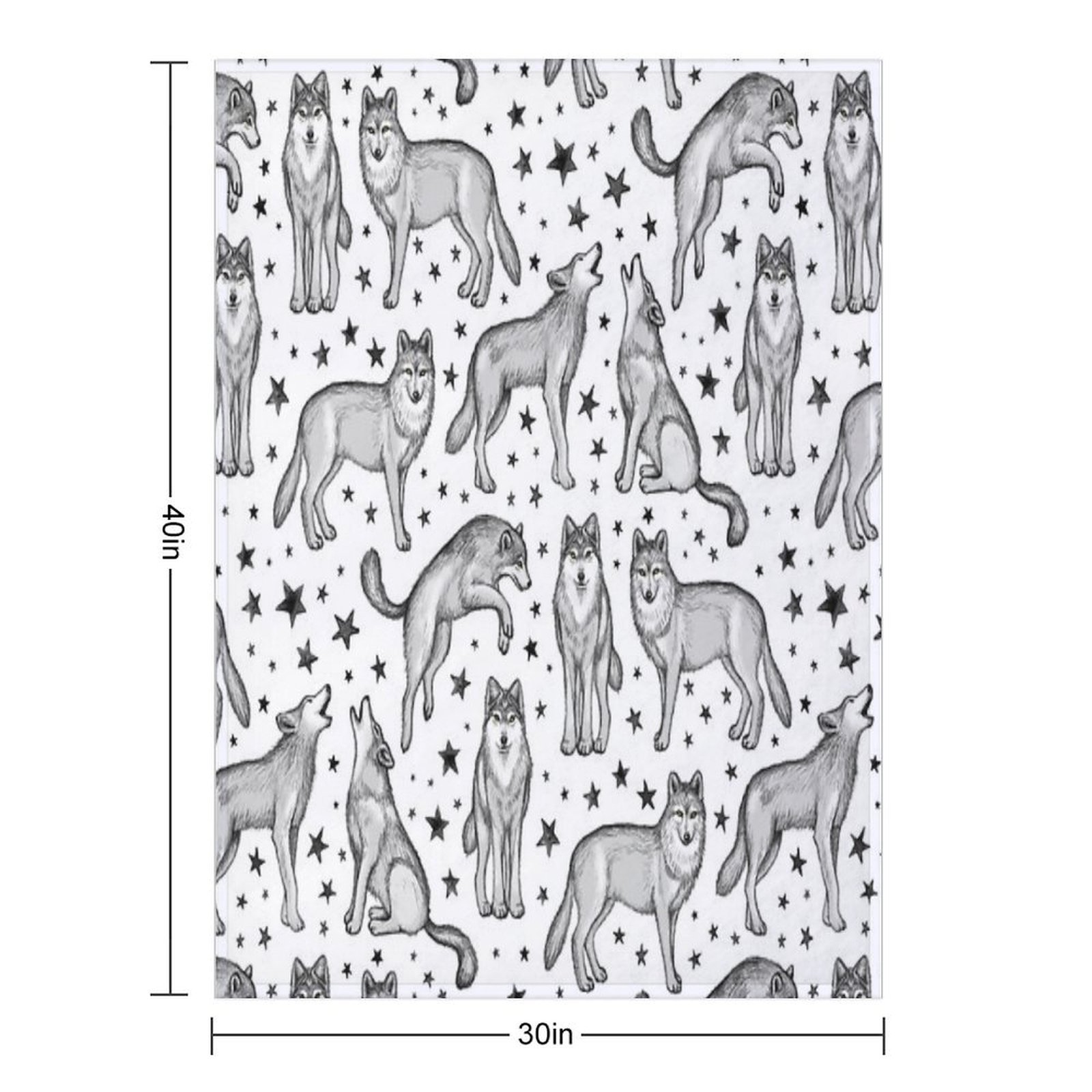 Wolves And Stars on White Blanket Size Chart: