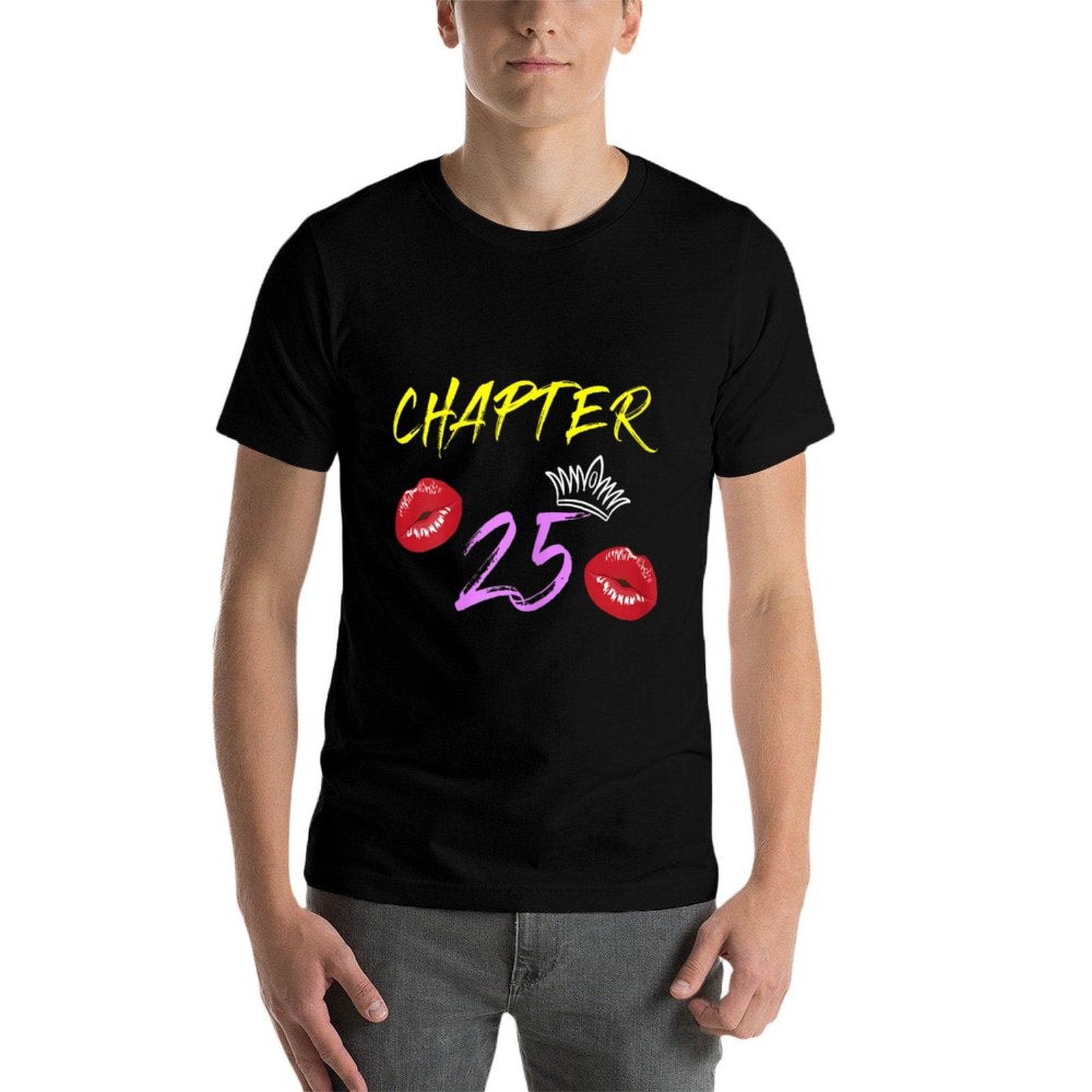- Avoid bleach to preserve the Womens Chapter 25 25th Birthday Gift Lips T-shirt’s bold graphics and cotton integrity.
