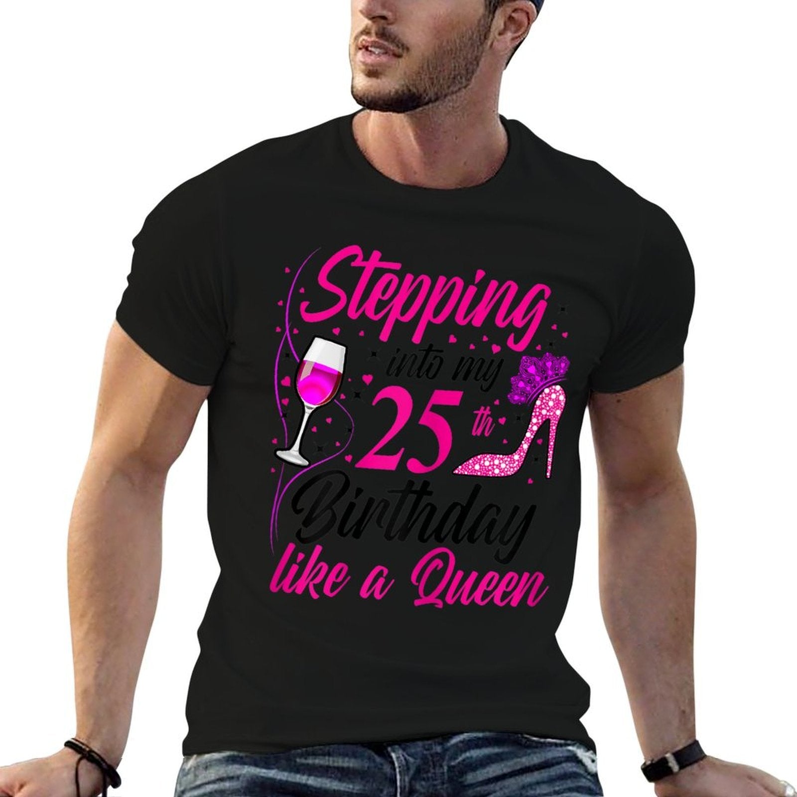 - Avoid bleach to preserve the Womens Stepping Into My 25th Birthday Like A Queen I 25th Birthday T-shirt’s bold graphics and cotton integrity.