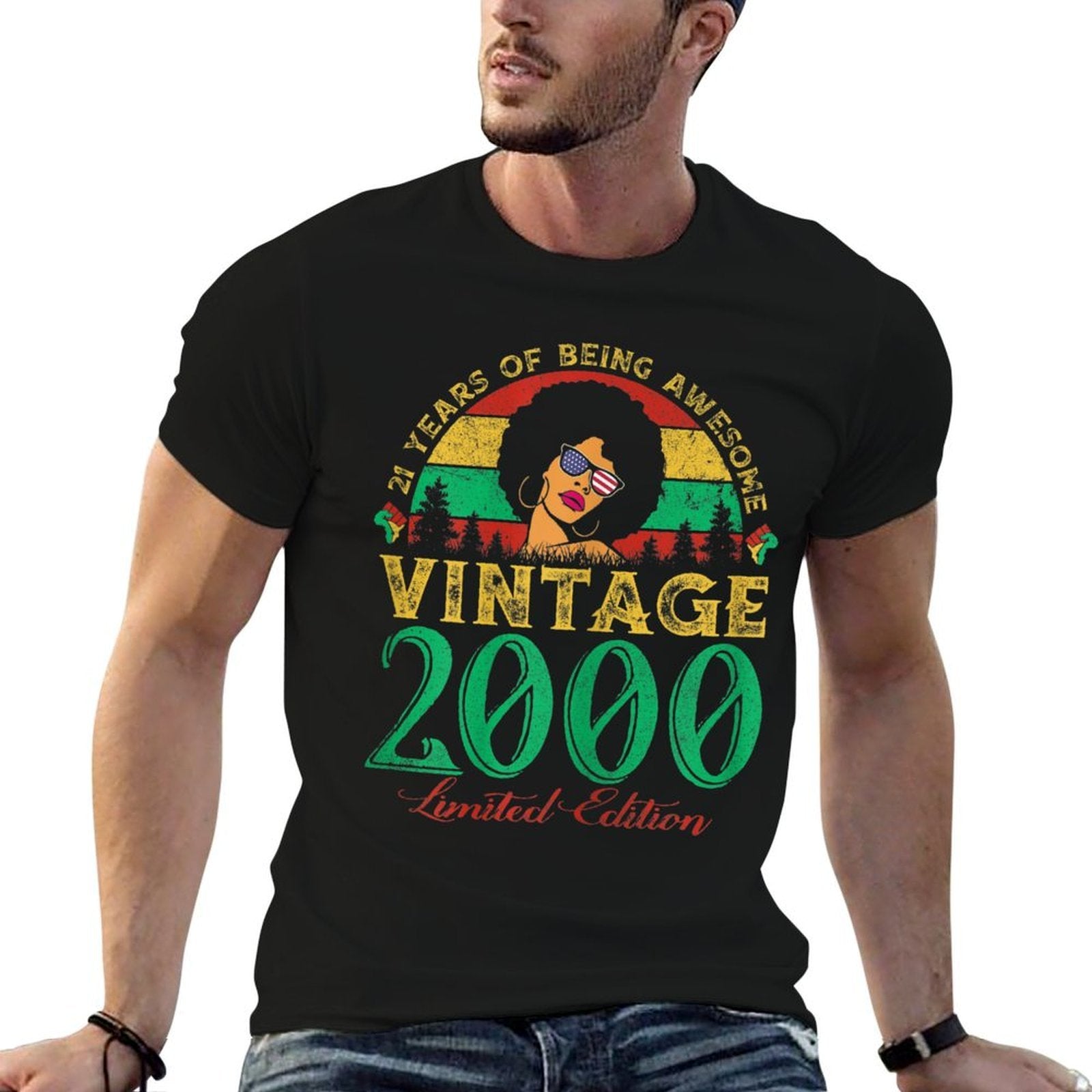 - Avoid bleach to preserve the Womens Vintage 2000 Sunset 21 Years Old Black Woman 21st Birthday T-shirt’s bold graphics and cotton integrity.